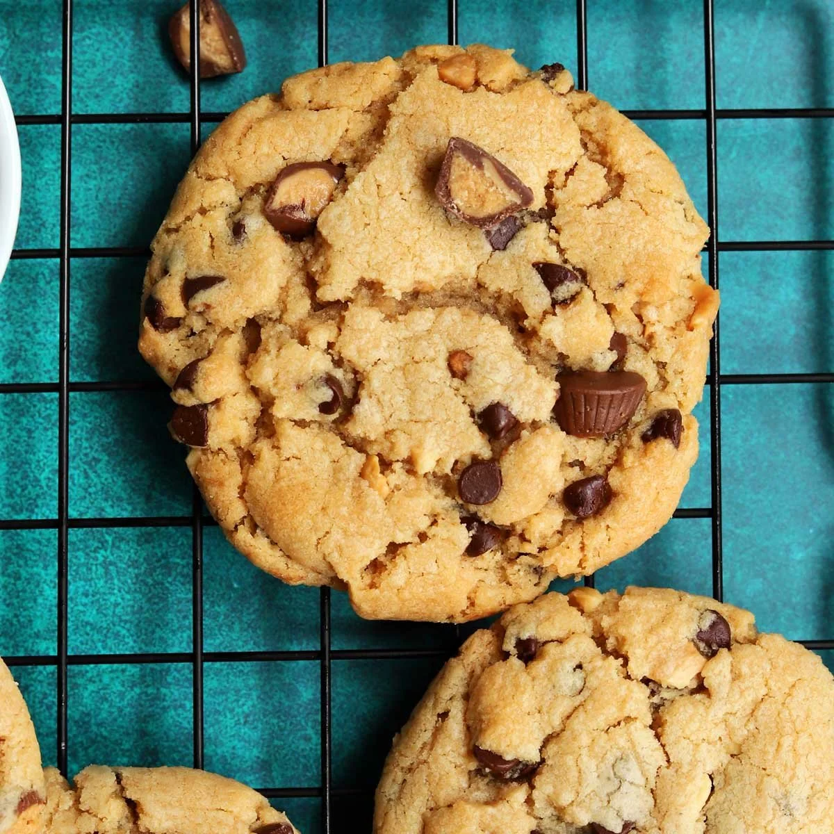 Soft peanut butter cookie topped with mini peanut butter cups.