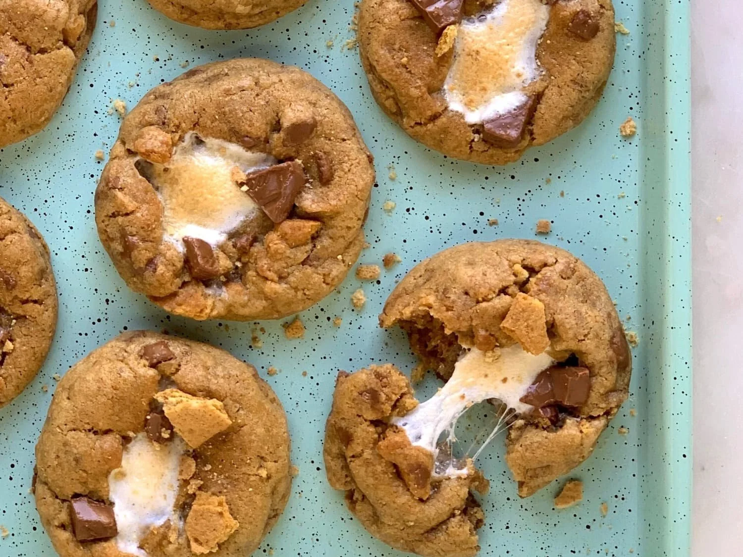 Your campfire favorite in cookie form- crunchy graham cracker pieces baked with gooey marshmallows and milk chocolate chunks.